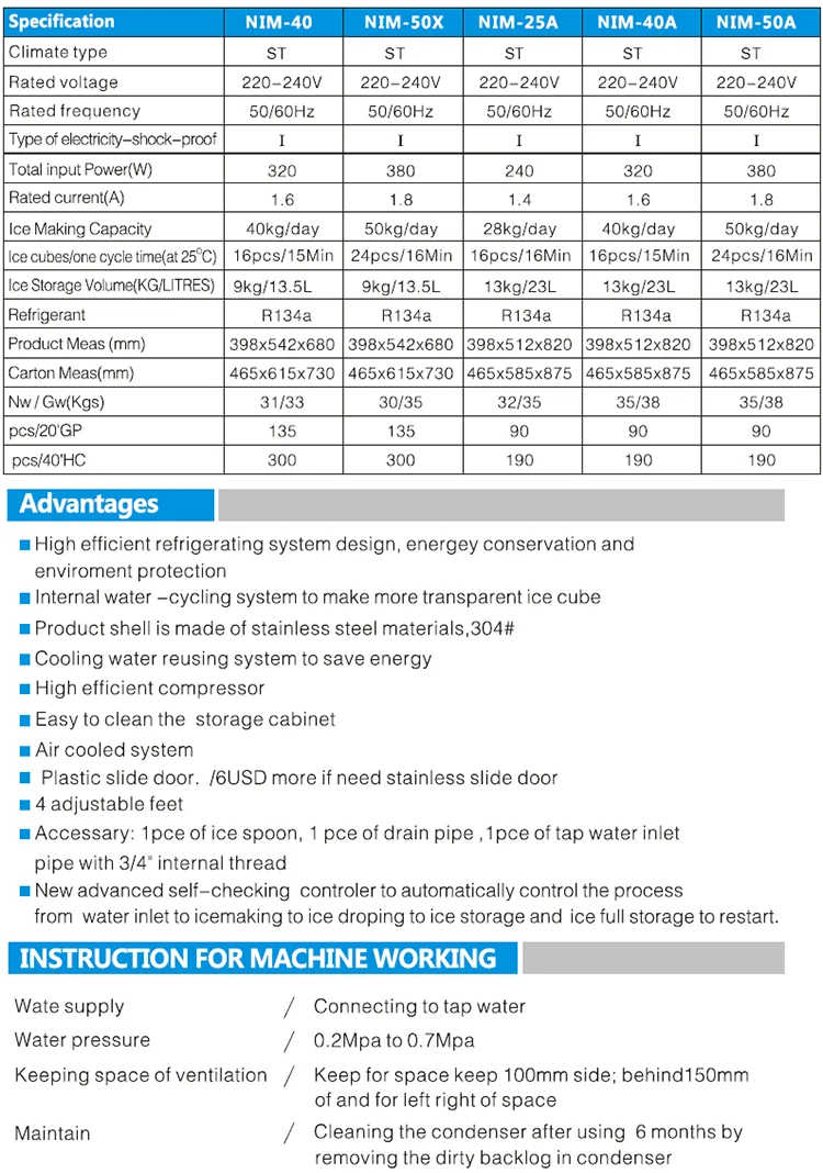 NIM-50AD bullet ice maker Specification: